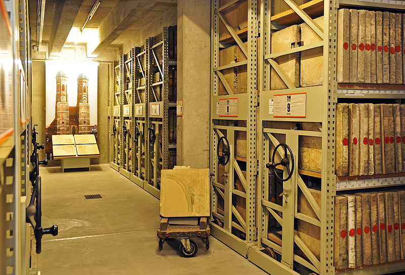 Im Keller des Landesamts für Digitalisierung, Breitband und Vermessung befindet sich ein Archiv, das in seiner Art und Ausdehnung weltweit einzigartig ist: Das Lithographiesteinarchiv. Die aus 26.634 Steinen bestehende Steinbibliothek steht seit 1980 unter Denkmalschutz.