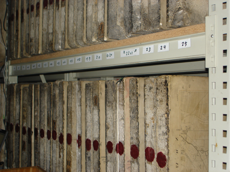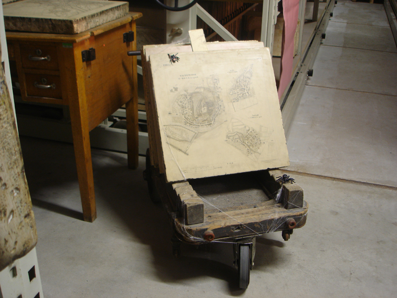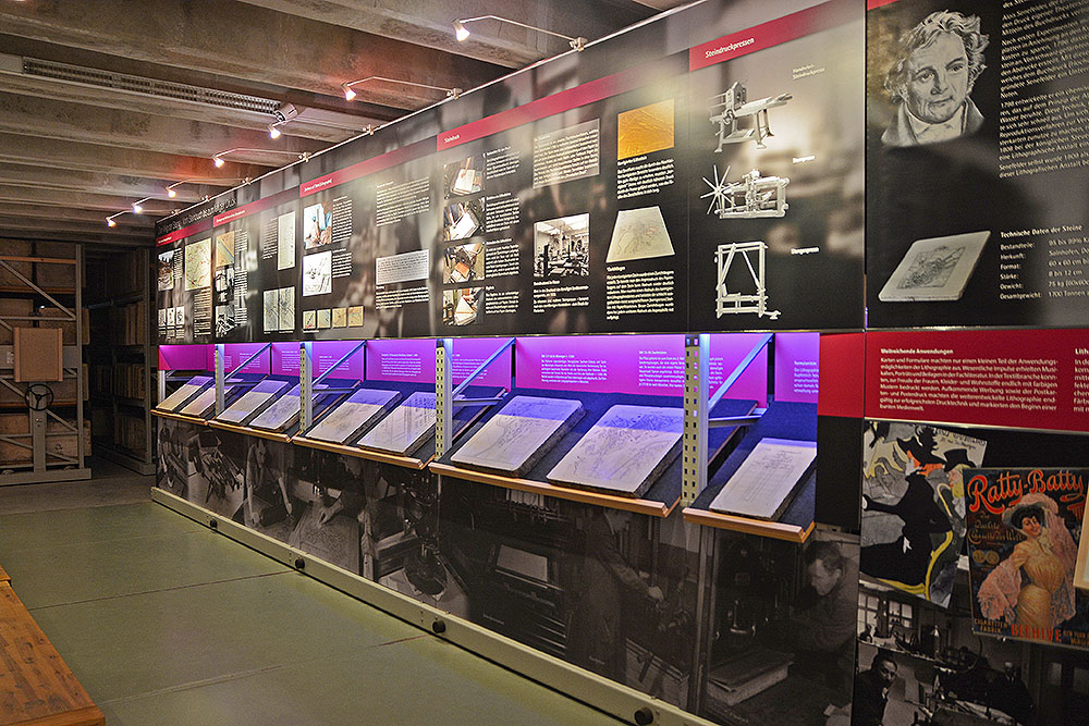 Im Keller des Landesamts für Digitalisierung, Breitband und Vermessung befindet sich ein Archiv, das in seiner Art und Ausdehnung weltweit einzigartig ist: Das Lithographiesteinarchiv. Die aus 26.634 Steinen bestehende Steinbibliothek steht seit 1980 unter Denkmalschutz.